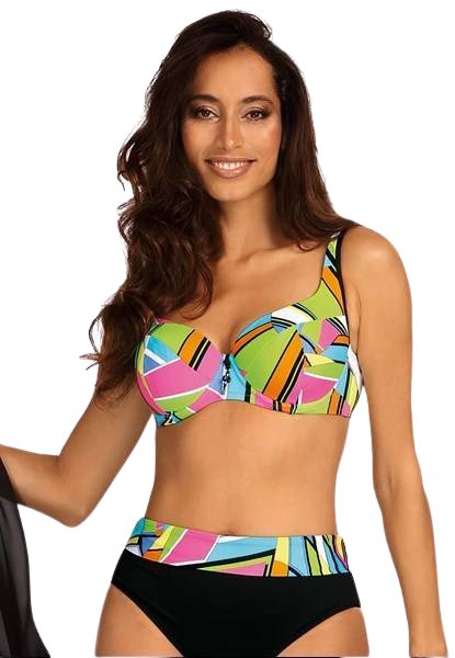 Biustonosz od stroju kąpielowego na duży biust w kolorowy, geometryczny wzór