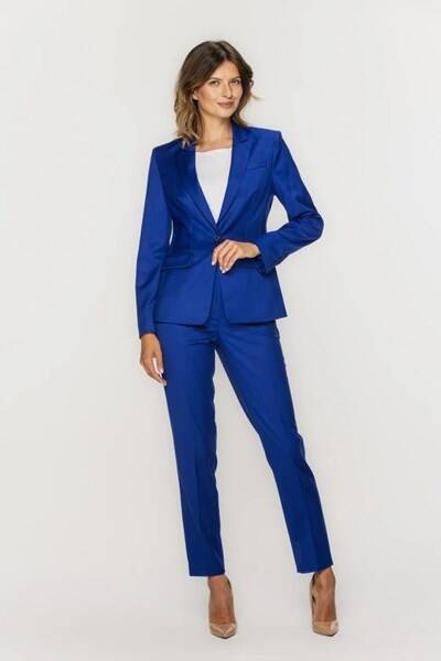 Stylowe chabrowe cygaretki, które doskonale łączą elegancję z komfortem. Wykonane z tkaniny (62% poliester, 35% wiskoza, 3% elastan) zapewniającej idealne dopasowanie i swobodę ruchów, z podszewką z acetatu (100%), która gwarantuje wygodę noszenia. Klasyczny krój z prostymi nogawkami subtelnie podkreśla sylwetkę, a intensywny chabrowy kolor dodaje energii i charakteru. Idealne na eleganckie wyjścia, do biura czy na specjalne okazje, świetnie komponują się z koszulami, bluzkami czy żakietami.