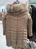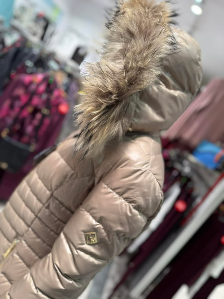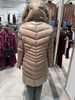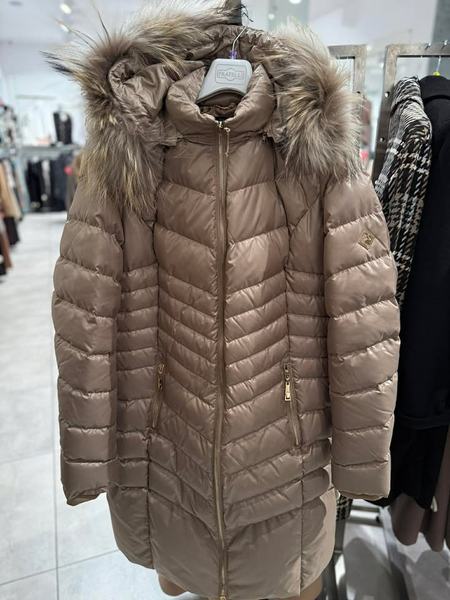 Nowoczesna i efektowna kurtka o wydłużonej formie, sięgająca za kolana, w kolorze cappuccino. Wykonana z tkaniny poliestrowej o delikatnym połysku. Wypełnienie naturalnym pierzem zapewnia doskonałą ochronę przed chłodem, wiatrem i mrozem. Modne pikowania potęgują efekt ochrony przed zimnem ale też wyszczuplają sylwetkę. Prosty, lekki krój. Obszerny dosuwany kaptur wykończony dosuwaną listwą z naturalnego futra z jenota gwarantuje elegancki i luksusowy wygląd. Całość zapinana na dwustronny suwak . Posiada dwie kieszenie zapinane na suwak. Długość płaszcza do kolan. Prosta, uniwersalna forma sprawdza się w wielu połączeniach – zarówno ze stylem eleganckim, jak i sportowym. Wygląda równie dobrze na różnych typach sylwetek. Ponadczasowy fason sprawdzi się przez wiele lat.